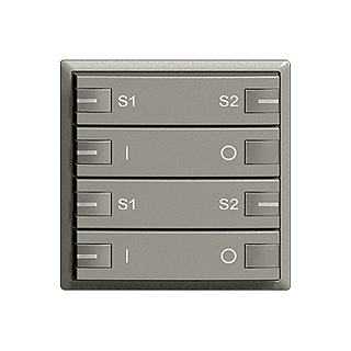 Abdeckset • Für zeptrion ON/OFF 2-Kanal Szene • Für Zentralstellen 3322… • Abdeckset komplett inkl Tasten • Mit LED • Vierfach-Taste • 2fach-Bedienung • Ohne Abdeckrahmen • F • dunkelgrau • IP20 • 60 x 60 mm