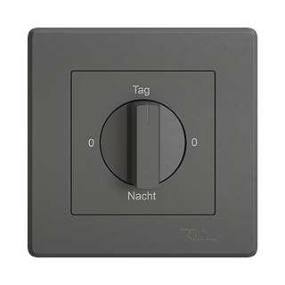 EDIZIO.liv •  Abdeckset •  Für Drehschalter mit Drehgriff •  Beschriftung 0 - Tag - 0 - Nacht •  Mit Abdeckrahmen •  GMI.A (920-) •  dunkelgrau •  IP20 •  96 x 96 mm (93 x 93 mm)