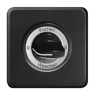 Set di copertura • Per interruttore rotativo con manopola • Iscrizione 0 - Kochen - 0 - Waschen • Con placca di copertura • PMI • nero • IP20 • 86 x 86 mm