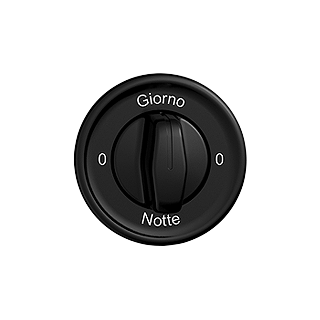 STANDARDdue (SNAPFIX) •  Abdeckset •  Für Drehschalter mit Drehgriff •  Beschriftung 0 - Giorno - 0 - Notte •  Ohne Abdeckplatte •  Frontscheibe 53 mm, für Bohrung 50 mm •  Q.A (920-, 53) •  schwarz •  IP20