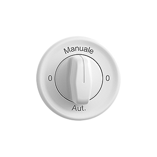 STANDARDdue (SNAPFIX) •  Abdeckset •  Für Drehschalter mit Drehgriff •  Beschriftung 0 - Manuale - 0 - Automatico •  Ohne Abdeckplatte •  Frontscheibe 53 mm, für Bohrung 50 mm •  Q.A (920-, 53) •  weiss •  IP20