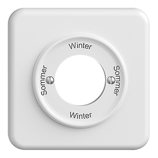 STANDARDdue (SNAPFIX) • Abdeckset • Für Drehschalter mit Sicherheitsschloss • Beschriftung Sommer - Winter - Sommer - Winter • Ohne Abdeckplatte • Frontscheibe 60 mm, für Bohrung 58 mm • weiss