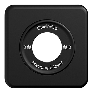 STANDARDdue (SNAPFIX) • Set de recouvrement • Pour interrupteur rotatif avec serrure de sûreté • Inscription 0 - Cuisinière - 0 - Machine à laver • Sans plaque de recouvrement • Disque frontale 60 mm, pour découpe 58 mm • noir