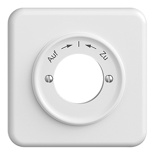 STANDARDdue (SNAPFIX) • Set di copertura • Per pulsante girevole con chiusura sicurezza • Iscrizione Auf ? ? Zu • Senza placca di copertura • Disco frontale 60 mm, per ritaglio 58 mm • bianco