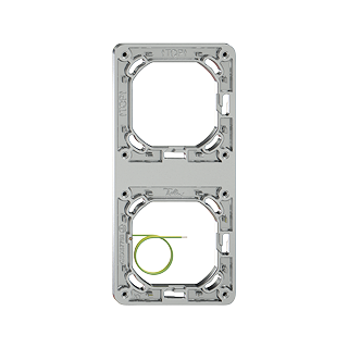ELEMENT • Telaio di montaggio GUP • Per 2 apparecchi • Per disposizione verticale e orizzontale • Con trefolo di messa a terra collegato in modo permanente • Con guarnizione in gomma schiumata • Sistema de fissagio SNAPFIX® • GUP.Q.A • alluminio • 187 x 87 mm
