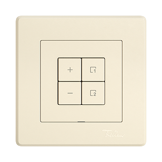 EDIZIO.liv • Bedienaufsatz Wiser Dimmer 1-Kanal Szene WLAN Gen.B • Für Anlagen bis 100 Apparate, Licht und Storen, Wetterstation, Raumtemperatursensor • Funktionsfähig mit Wiser Funktionseinsatz • Ermöglicht das Einbinden der kompletten Wiser Anlage in ein WLAN-Heimnetzwerk per App • 4 Tasten • Ohne Abdeckrahmen • SNAPFIX® Befestigungssystem • crema