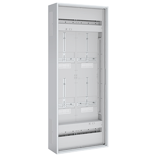 PrismaSeT XL • Komplettverteiler • Wandgehäuse ohne Tür • Bis Nennstrom 63 A • Stahlblech pulverbeschichtet, verkehrsweiss RAL9016 • Schutzisoliert Klasse II gemäss IEC6043-3 • 2 Reihen • 4 Zählerplätze • 550 x 1400 x 210 mm • IP44