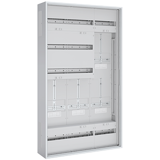 PrismaSeT XL • Komplettverteiler • Wandgehäuse ohne Tür • Bis Nennstrom 63 A • Stahlblech pulverbeschichtet, verkehrsweiss RAL9016 • Schutzisoliert Klasse II gemäss IEC6043-3 • 4 Reihen • 4 Zählerplätze • 800 x 1400 x 210 mm • IP44