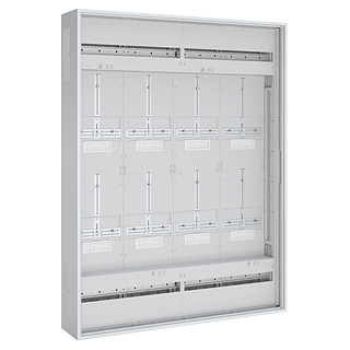 PrismaSeT XL • Komplettverteiler • Wandgehäuse ohne Tür • Bis Nennstrom 63 A • Stahlblech pulverbeschichtet, verkehrsweiss RAL9016 • Schutzisoliert Klasse II gemäss IEC6043-3 • 2 Reihen • 8 Zählerplätze • 1050 x 1400 x 210 mm • IP44